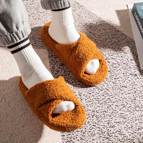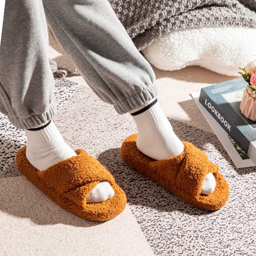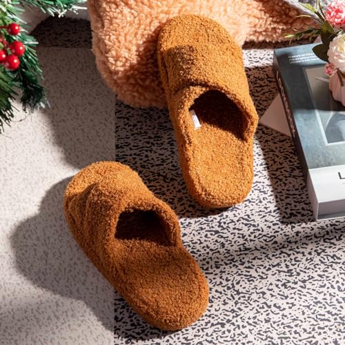 MEJORMEN Women's Memory Foam Slippers - Cozy Faux Fur Lined House Shoes, Open-Toe Non-Slip Indoor/Outdoor Slippers, Plush Fuzzy Comfort, Trendy Gift for Women 7