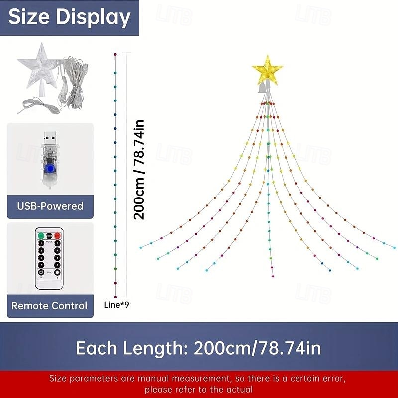 $20.99 - 2M-200Leds Christmas Tree Light String with Pentagram Top Light, Powered by USB Remote Control for Controlling Indoor and Outdoor Decoration 2025. Shop for cheap USB String Lights online? Buy at lightinthebox.com on sale today!