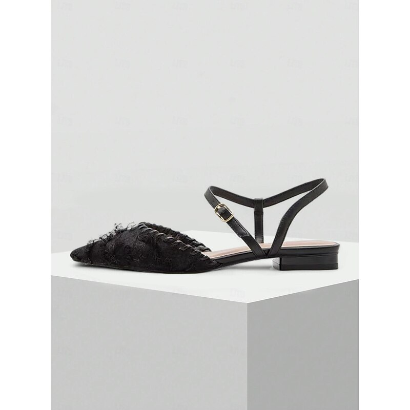 HOT ! Women's Elegant Low-Heel Slingback Flats with Fringed Detail: Perfect for Business Casual or Everyday Elegance