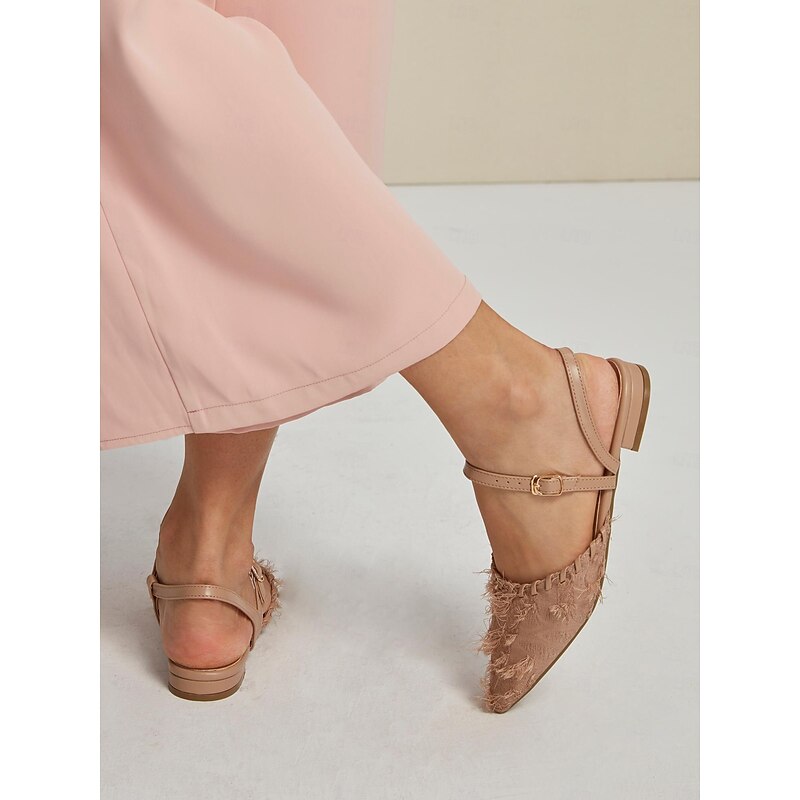 Women's Elegant Low-Heel Slingback Flats with Fringed Detail: Perfect for Business Casual or Everyday Elegance 12
