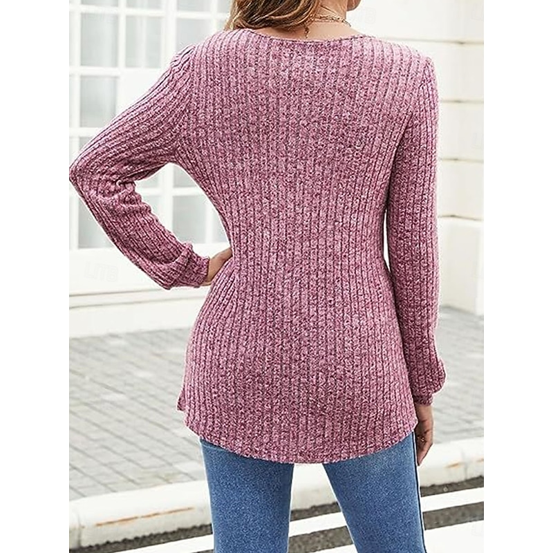 More information about Women's Sweater Pullover Sweater Jumper Casual Soft Pure Color Ribbed V Neck Knitted Long Sleeve Regular Tops Knit Outdoor Daily Weekend Black Fuchsia Fall Winter