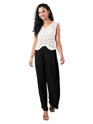 • High‑Waisted Comfort – Pleated front, back‑elastic waistband, and handy side pockets; flattering, secure, all‑day wear for womens wide leg pants.