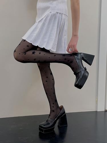 Women fishnet tights black fishnet stockings for women star patterned tights leggings 5