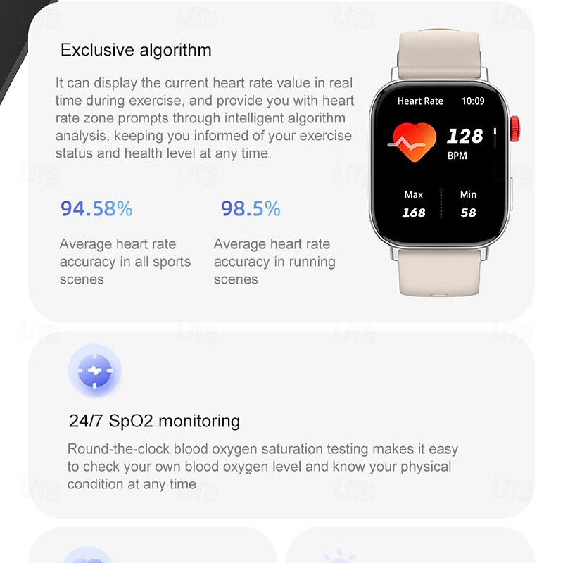 696 P93 Smart Watch 1.393 inch Smart Band Fitness Bracelet Bluetooth Pedometer Call Reminder Sleep Tracker Compatible with Android iOS Women Men Hands-Free Calls Message Reminder IPX-0 38mm Watch Case 11