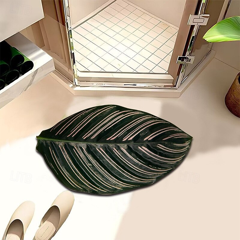 Leaf Shape Doormat Kitchen Mat Floor Mat Non-Slip Area Rug Oil Proof Rug Indoor Outdoor Mat Bedroom Decor Bathroom Mat Entrance Rug 3