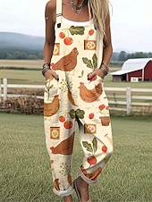 HOT ! Women's Normal Jumpsuit Streetwear Print Short Sleeve Wide Leg U Neck Pocket Street Daily Regular Fit Khaki Summer