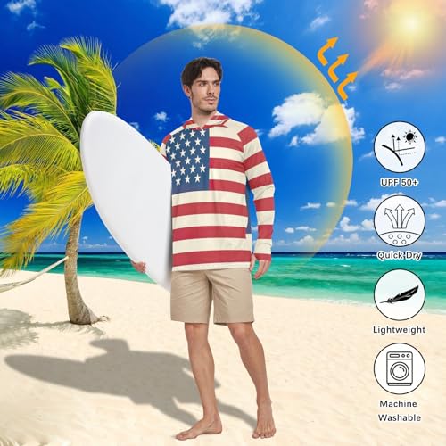 xigua American Flag Men's UPF 50+ Sun Shirts Quick Dry Sun Protection Hoodie With Long Sleeve 37 2