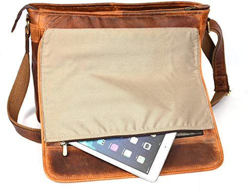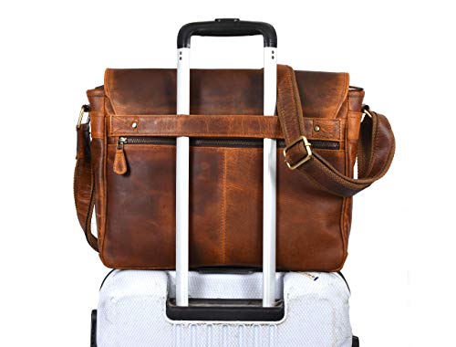 16" Crossbody Bag Leather Laptop Messenger Bag For Men with trolley sleeve for school office (Caramel) 5