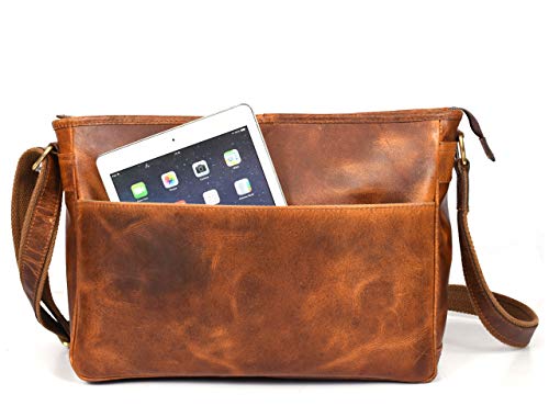 More information about 16" Crossbody Bag Leather Laptop Messenger Bag For Men with trolley sleeve for school office (Caramel)