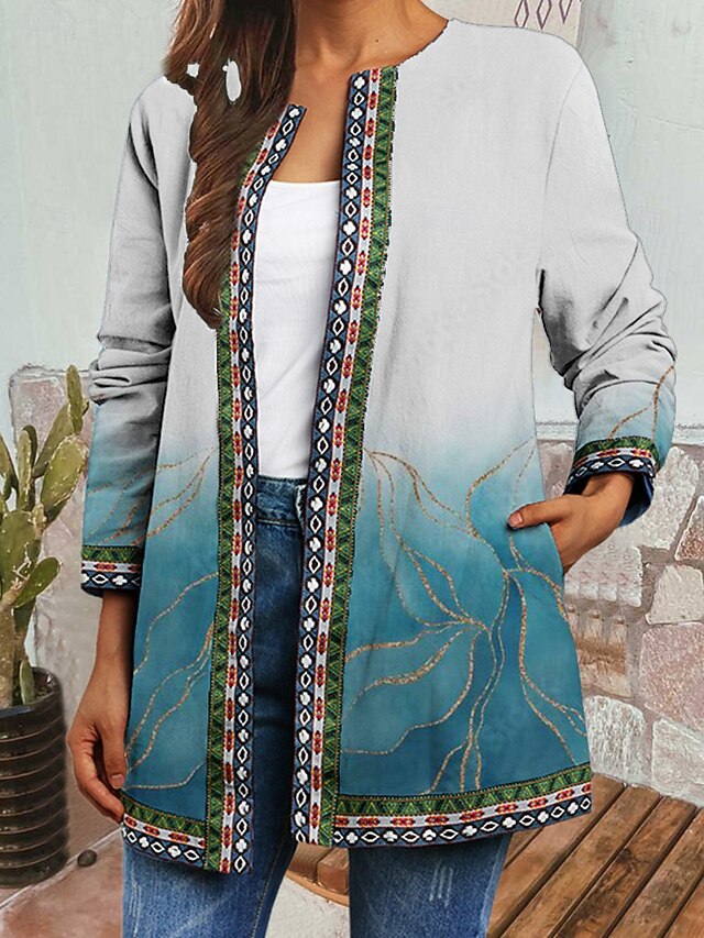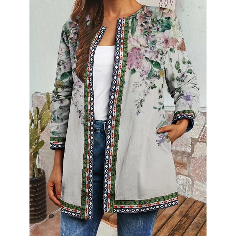 More information about Women's Casual Jacket Windproof Warm Pocket Color Block Open Front with Pockets Modern Floral Casual Daily Casual Daily Short Crewneck Regular Fit Long Sleeve Outerwear Black Light Green Blue Fall