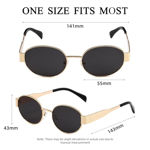 More information about Trendy Oval Sunglasses for Women Retro Designer Gold Sun Glasses Classic Metal Frame Shades 90s