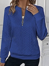 More information about Women's Blouse Solid Color Stylish Casual Long Sleeve Crew Neck Regular Tops Daily Zipper Black White Pink Blue Spring Fall Winter