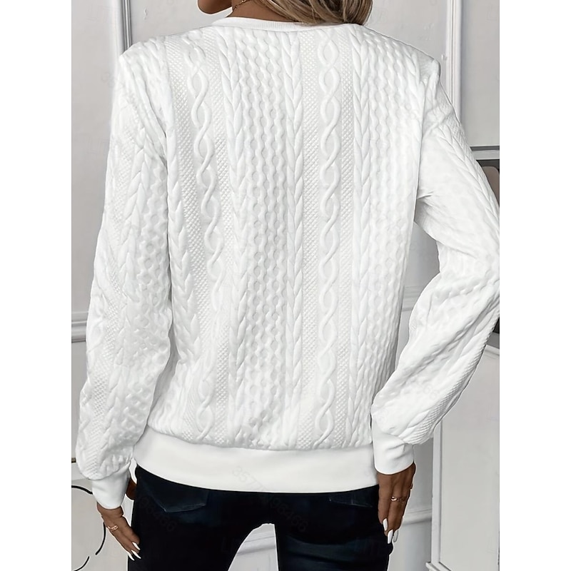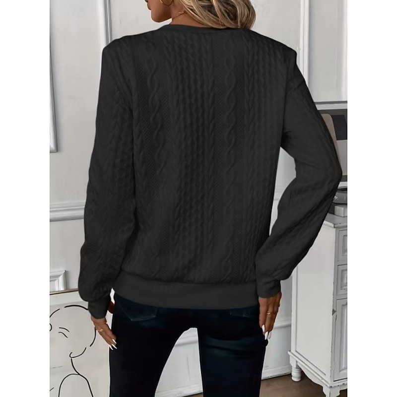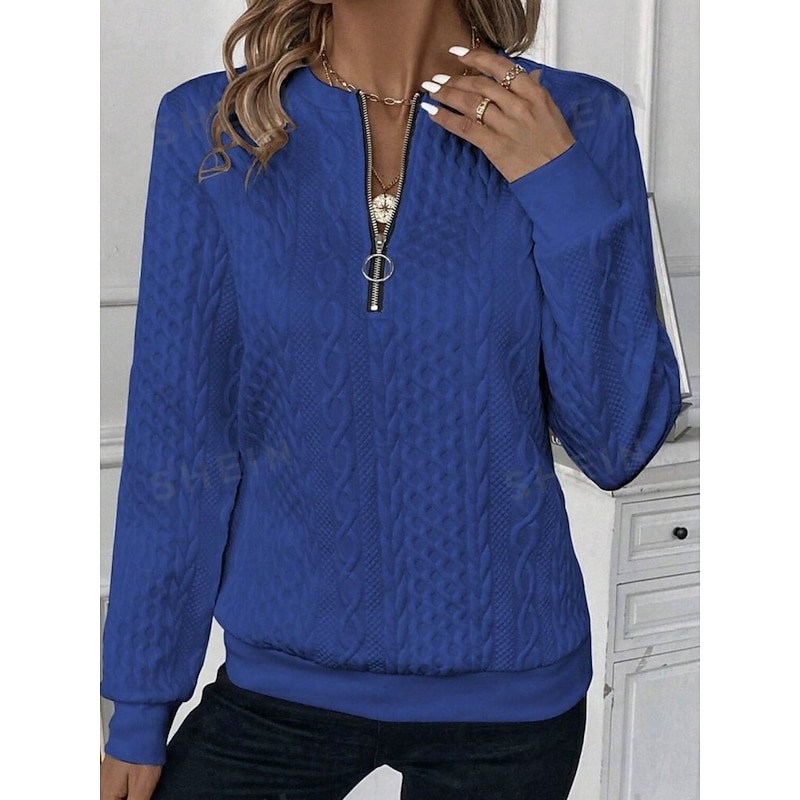 HOT ! Women's Blouse Solid Color Stylish Casual Long Sleeve Crew Neck Regular Tops Daily Zipper Black White Pink Blue Spring Fall Winter