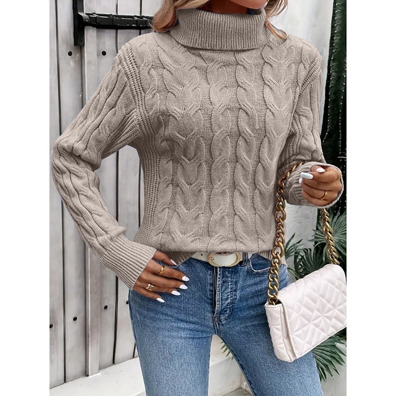 HOT ! Women's Sweater Casual Soft Pure Color Cable Turtleneck Knitted Long Sleeve Regular Tops Knit Outdoor Daily Weekend Pink Khaki Fall Winter