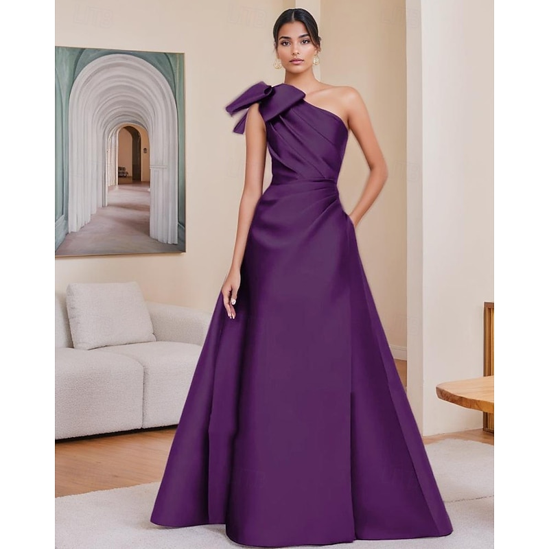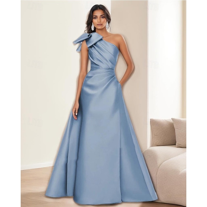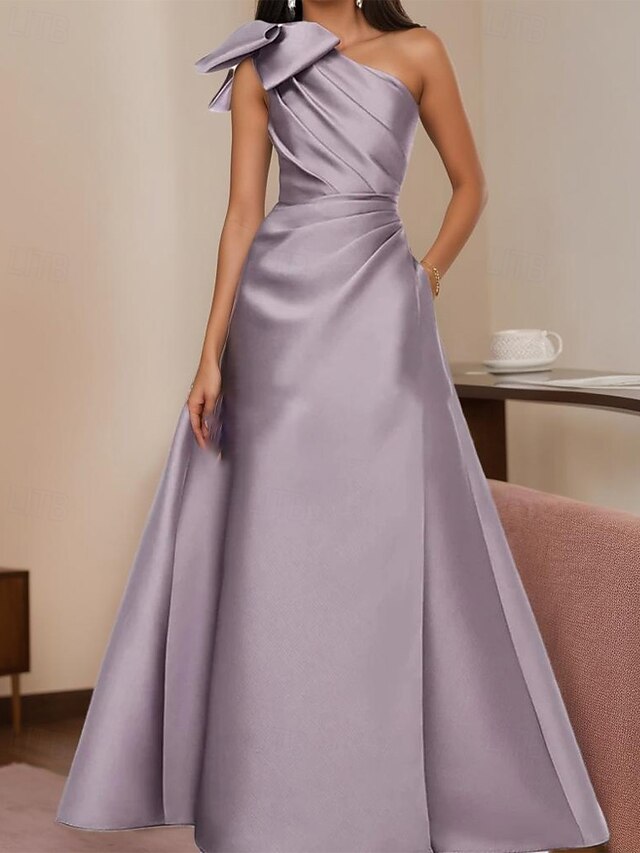 $129.99 - A-Line Evening Gown Elegant Dress Formal Evening Party Floor Length Sleeveless One Shoulder Satin with Bow(s) Pleats 2025. Shop for cheap A-Line Evening Dresses online? Buy at lightinthebox.com on sale today!