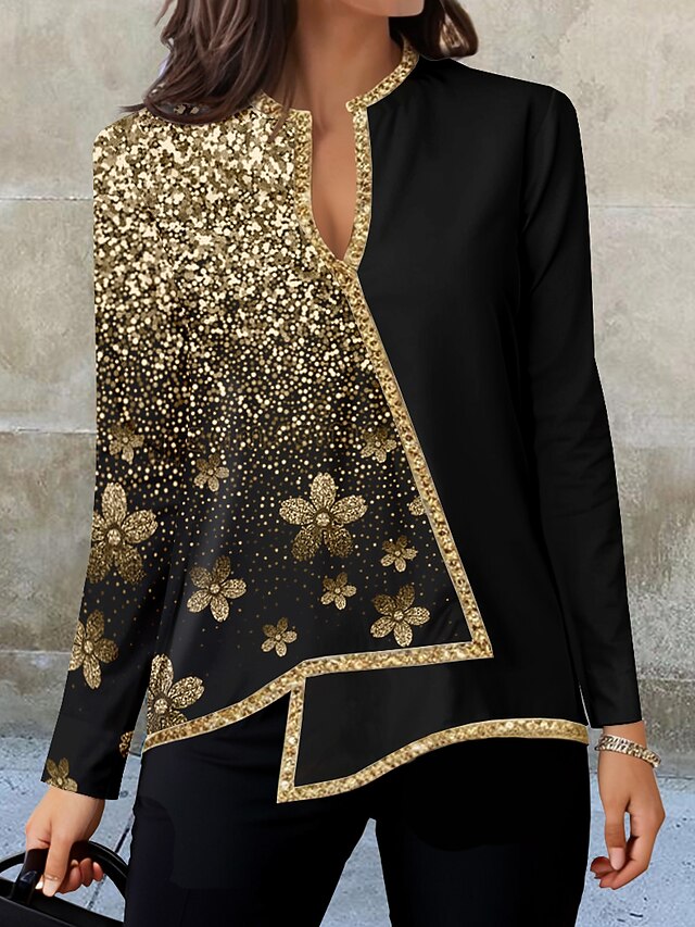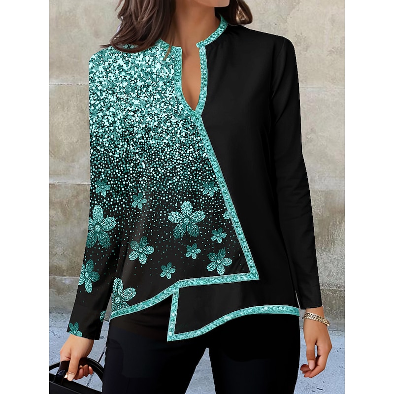 More information about Women's 3D Print Blouse Long Sleeve Asymmetrical Hem Fashion Floral Print Asymmetric Hem Regular Tops V Neck Casual Holiday Black Silver Pink Blue Green Fall & Winter
