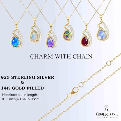 More information about GOODSTONE JEWELS Fire Round Opal Tri Stone Pendant Necklace for Her | Natural Ethiopian Opal Gemstone 925 Sterling Silver/Yellow Gold Plated 16 Inch+2" Extender Cable Chain Pendant Jewelry