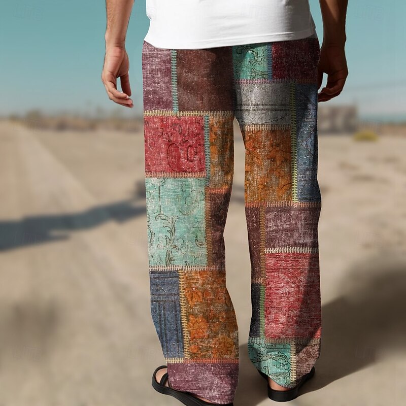 Men's Color Block Patchwork Mid Waist Hawaiian Casual Outdoor Casual Holiday Straight Leg Trousers Summer Spring 3D Print Pink Red Blue 11