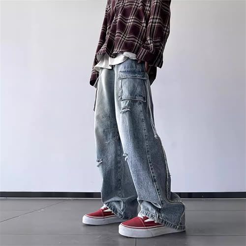 More information about Cargo Jeans for Men Ripped Baggy Jeans for Men Hip Hop Grunge Fashion Denim Pants Y2k Distressed Long Trousers