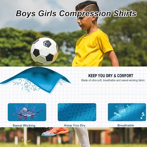 • ☢Breathable and Moisture-Wicking: Keep your child cool and dry with our compression shirt's breathable and moisture-wicking properties. The fabric is designed to allow air to circulate, preventing overheating during intense activities. The moisture-wicking technology pulls sweat away from the skin and disperses it across the surface of the fabric for rapid evaporation.