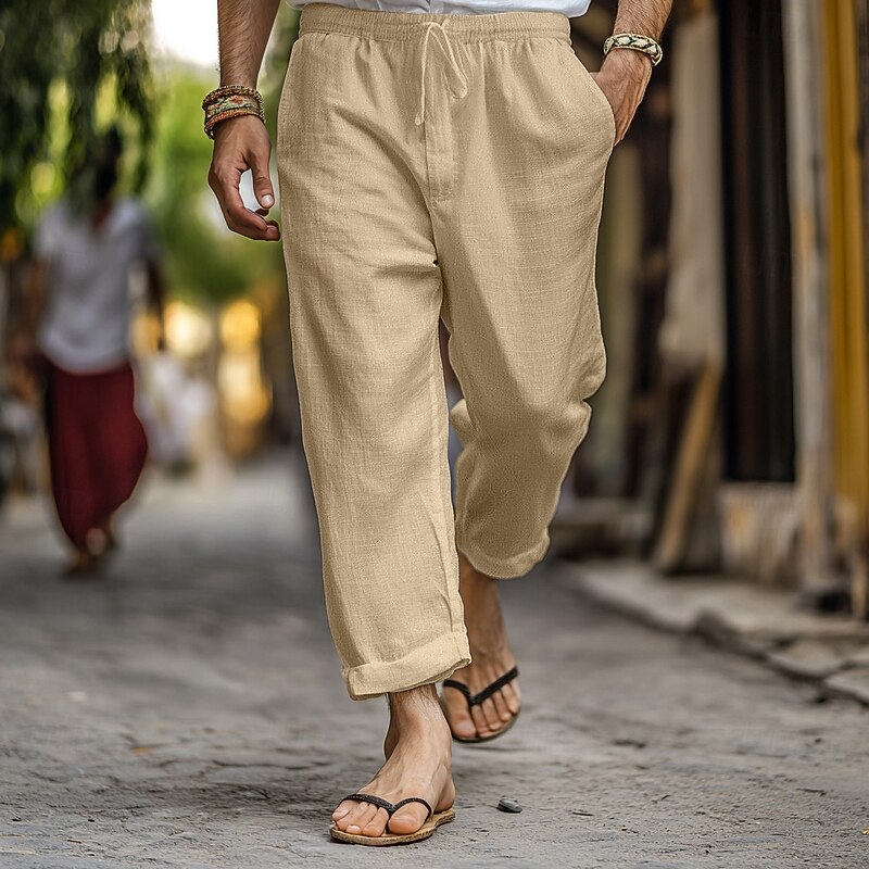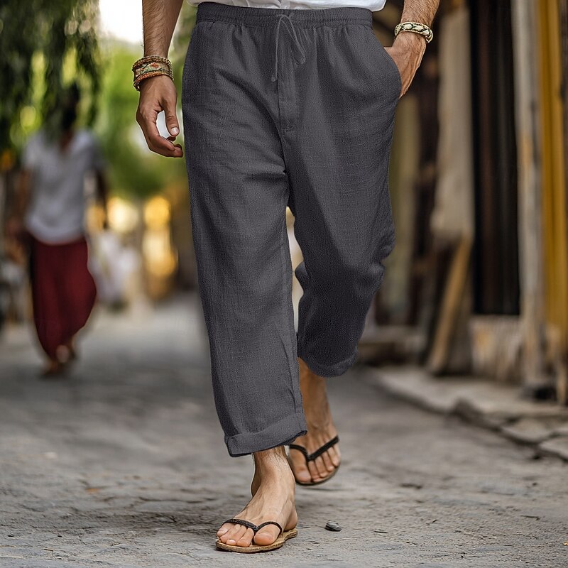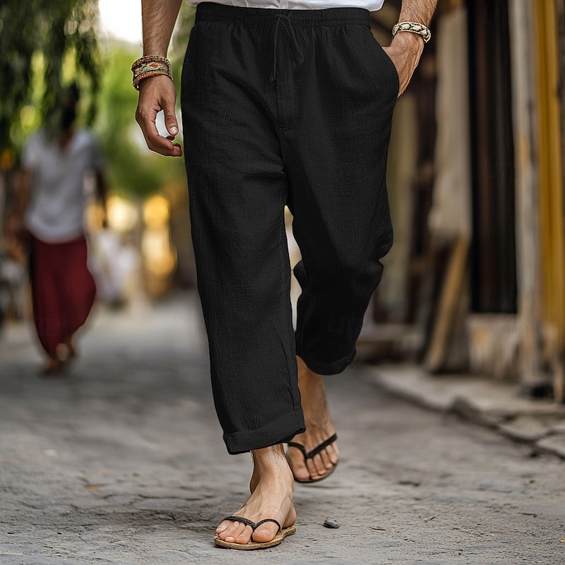 More information about Men's Linen Pants Trousers Summer Pants Gauze Pants Drawstring Elastic Waist Straight Leg Plain Comfort Breathable Full Length Home Casual Daily Fashion Classic Style Black White