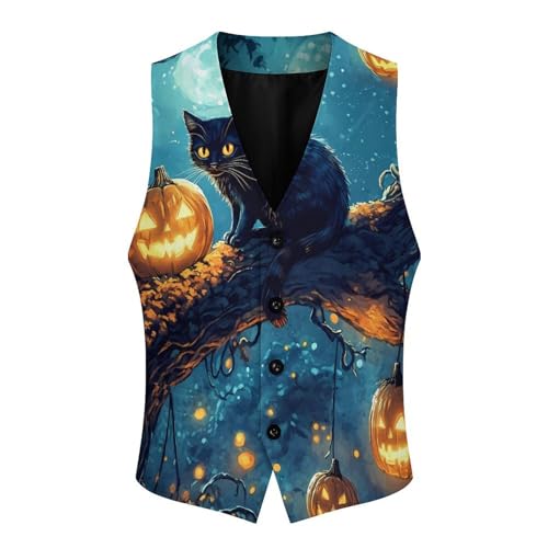 Halloween Cat Suit Vest for Men Waistcoat Dressy V Neck Button Down Sleeveless Business Jacket Coat 6