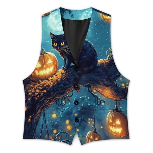 Halloween Cat Suit Vest for Men Waistcoat Dressy V Neck Button Down Sleeveless Business Jacket Coat 1