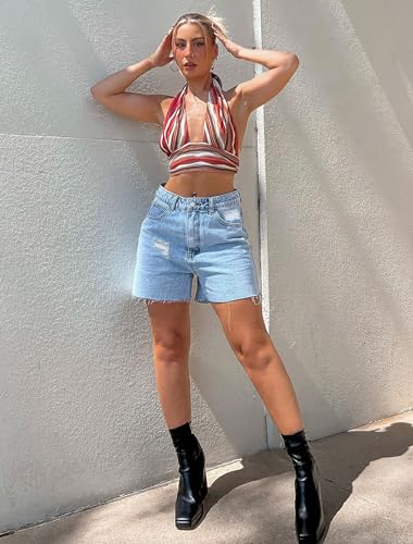 IWD Jean Shorts for Women High Waisted Stretchy Casual Denim Shorts Ripped Frayed Hem Summer Trendy Jorts 6