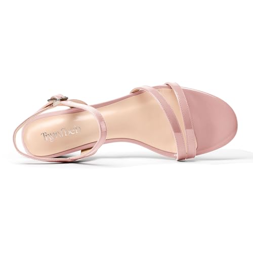 TNYNFBEB Womens Chunky Block Low Heel Open Toe Sandals strappy Ankle Strap Slingback Buckle Prom Dress Patent Leather 1.2 Inches Heels 4