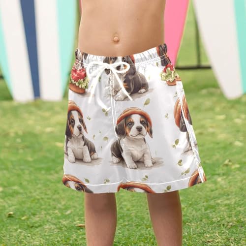 Pigsaly Boys Swim Trunks Cute Hamburger Hat Beagle Dog Puppy Boys Board Shorts Swimsuit Swimwear Summer Bathing Suit S Multicolor 6