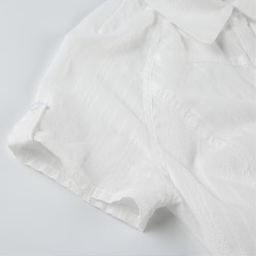 90s Crop Shirt Women Cap Sleeve Lapel Collar Button Down Slim Fit Ruched Shirts Tie Back Half Half Tights 5