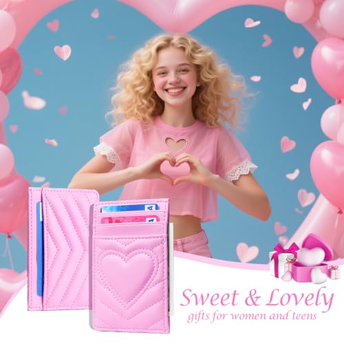 HOT ! Quilted Leather Small Wallet for Teen Girls Women, Heart Card Holder Gifts for Teenage Girls, Cute Trendy Stuff (Pink, Small)