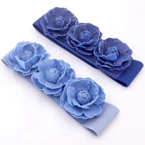 HOT ! Women's Vintage Denim Color 2In Wide Waist Cinch Belt For Dresses -Elastic Stretchy Flower Waistbands