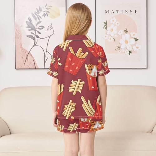 Guinea Pig French Fries Satin Summer Pajama Sets Silk Short Sleeve Button Down Sleepwear 2