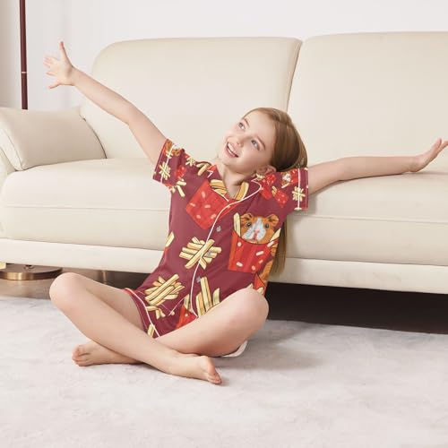 Guinea Pig French Fries Satin Summer Pajama Sets Silk Short Sleeve Button Down Sleepwear 6
