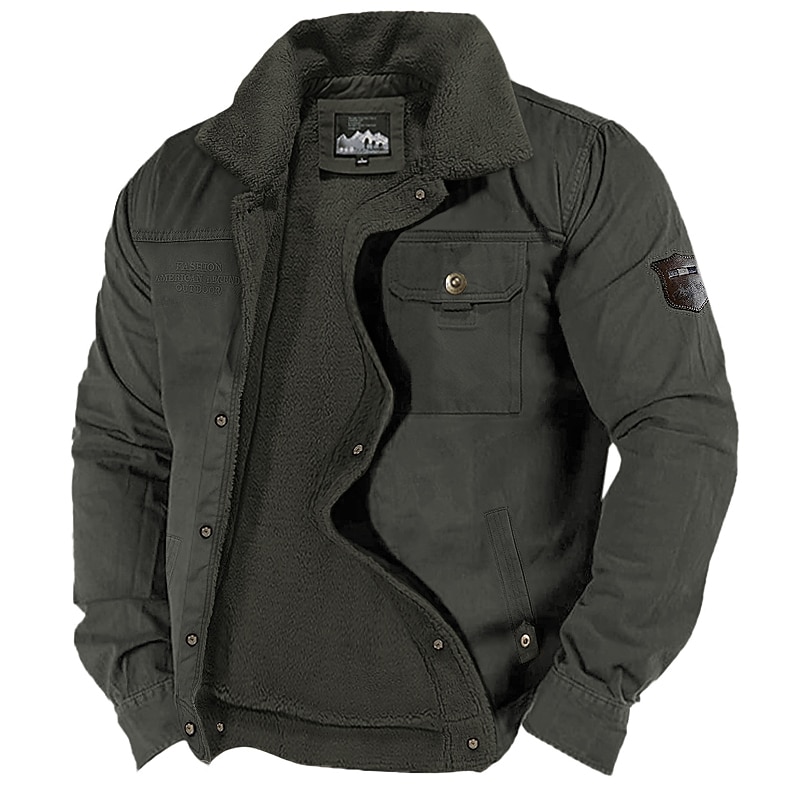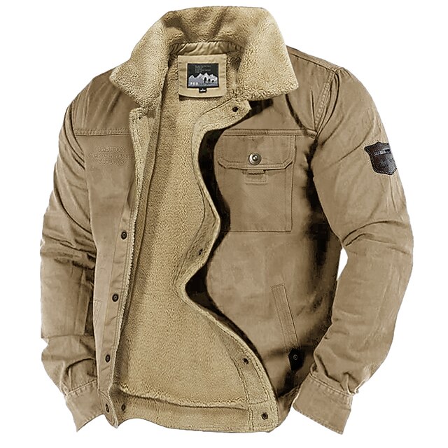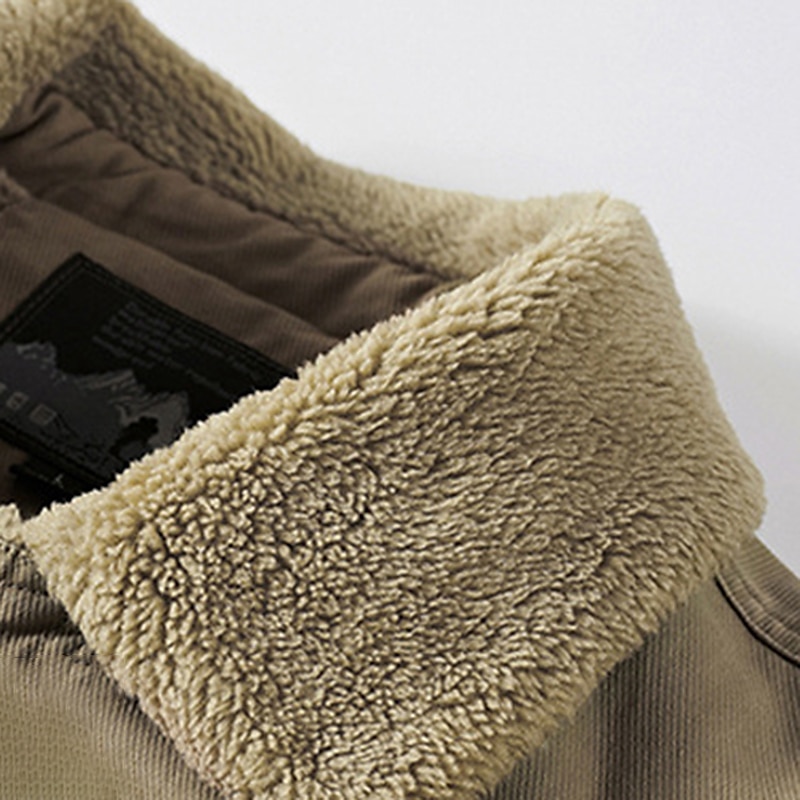 More information about Men's Trucker Jacket Winter Coat Sherpa Jacket Pocket Office & Career Date Casual Daily Outdoor Casual Sports Winter Plain Blue Green Khaki Puffer Jacket