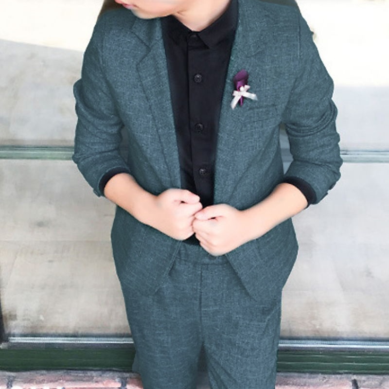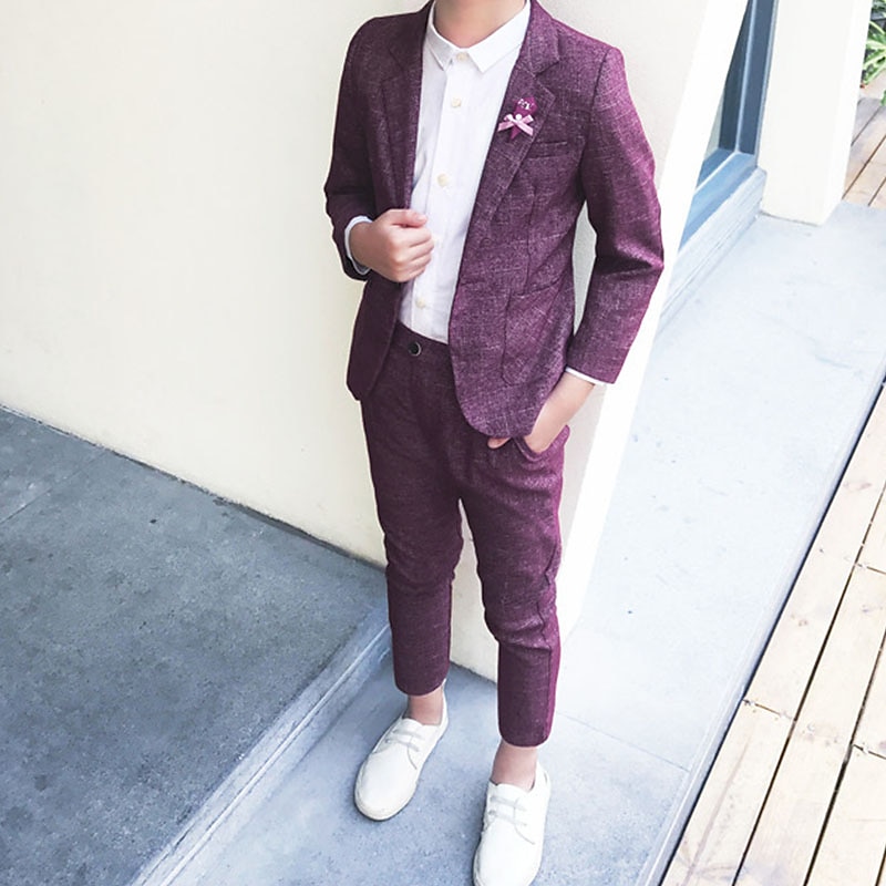 More information about 2 Pieces Ring Bearer Suit Boys Kids Suit Formal Suit Suit & Blazer Clothing Set School Formal Outdoor Fashion Cool Gentle Solid Color Wine Dusty Blue Green Cotton