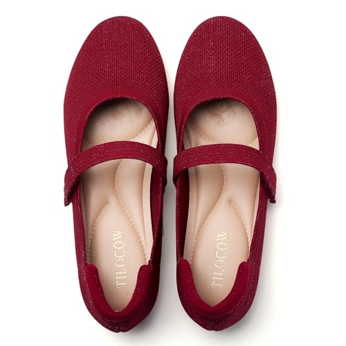 HOT ! Tilocow Womens Ballet Flats Round Toe Knit Mary Jane Shoes Comfortable Dressy Flats for Women Casual Adjustable Strap Slip On Shoes