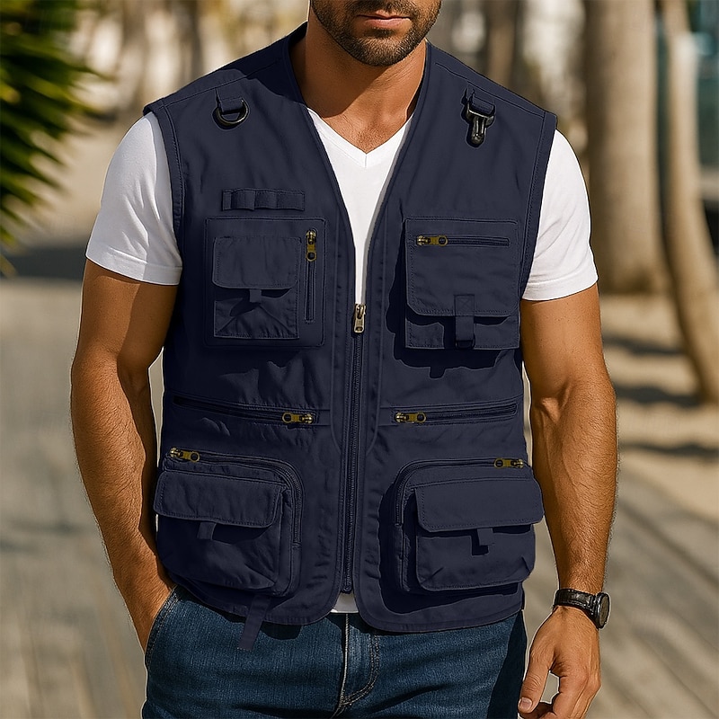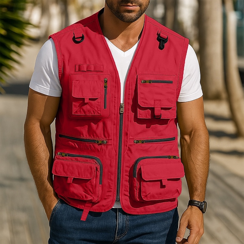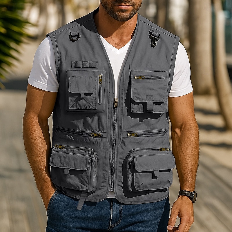 More information about Men's Outdoor Vest Tactical Jacket Sports Outdoor Casual Fishing Camping & Hiking Active Sporty Summer Spring Multi Pocket Multi Layer Mesh Panels Polyester Mesh Tactical Fishing Zipper Collarless