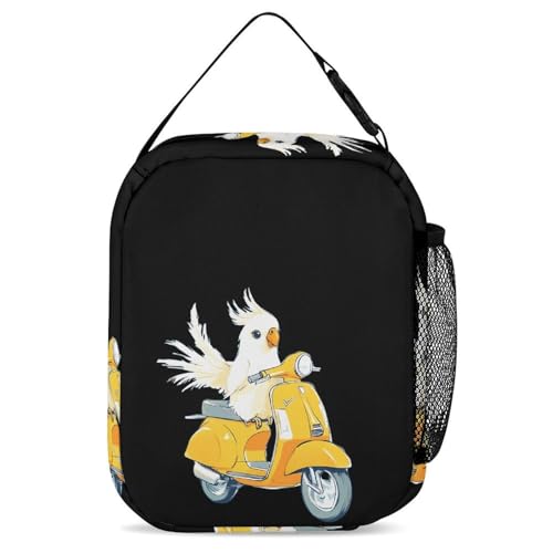 HOT ! Cockatiel Riding Motorcycle Cute Print Backpack Set of 3 Portable Lunchbox Pencil Cases for Daily Travel
