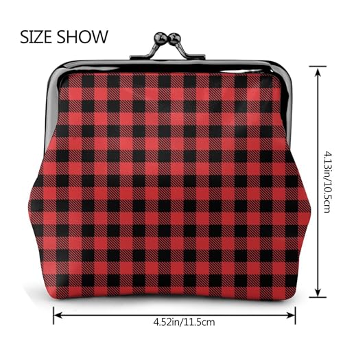 HOT ! Coin Purse Small Pu Leather Change Purse Wallet With Clasp Car Coin Holder Pouch For Woman Men (Christmas Tartan Red Black Buffalo Check Plaid)