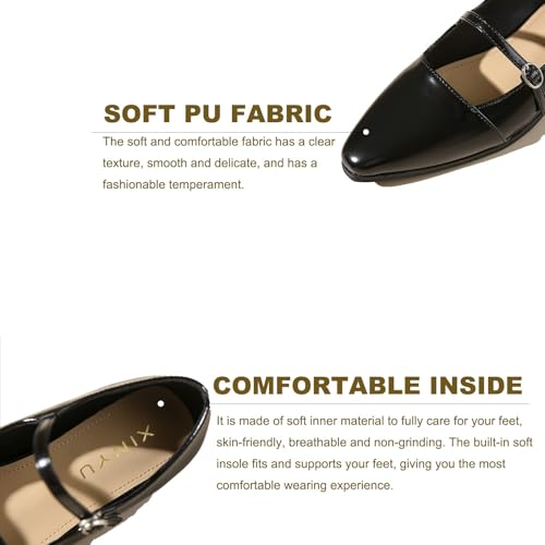 • 【CLASSIC DESIGN】:These comfortable two-strap Mary Janes feature a sleek pointed toe and a sturdy, durable block heel to complete your on-trend look. The straps can be adjusted to fit your feet for maximum comfort.