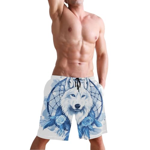 HOT ! Men’s Swim Trunks Blue Rose Dreamcatcher Wolf Beach Board Shorts Swimming Short Pants Running Sports Surffing Shorts