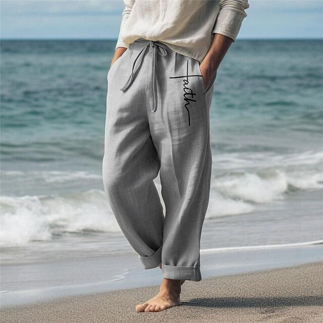 HOT ! Men's Faith Linen Pants Pants Trousers Baggy Pants Mid Waist Vintage Outdoor Daily Wear Streetwear Fall & Winter White Green Khaki