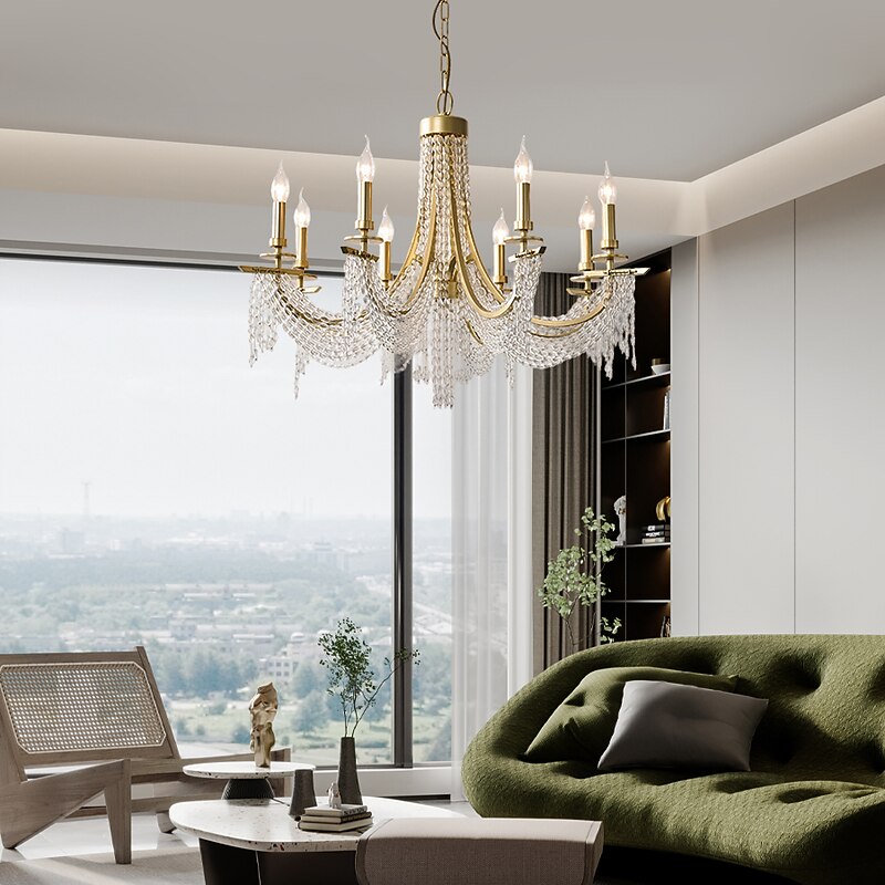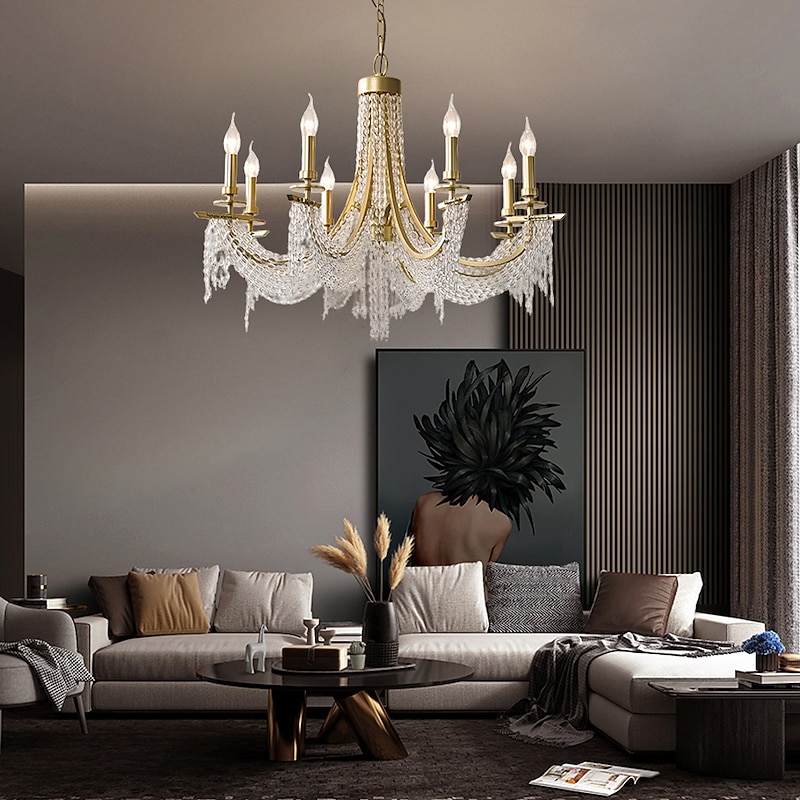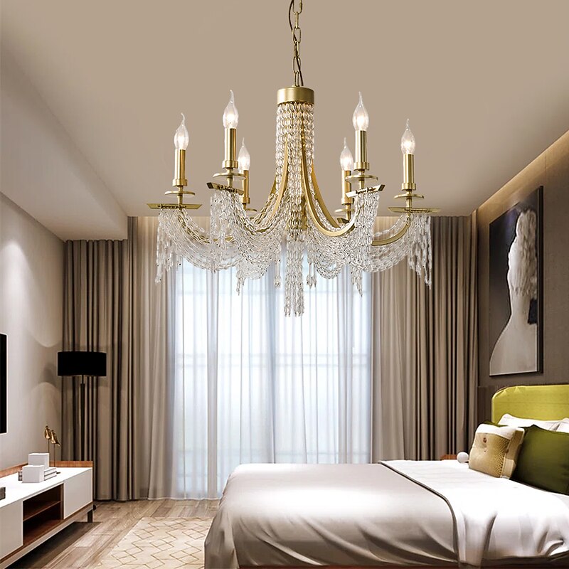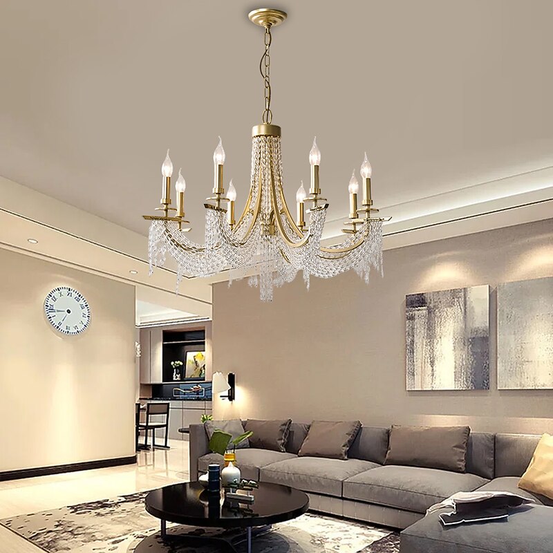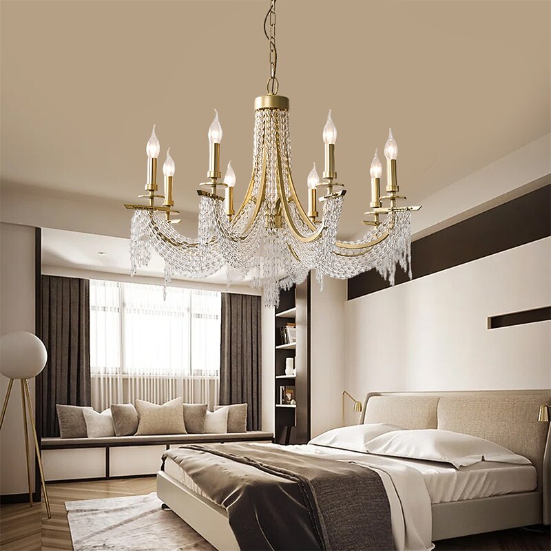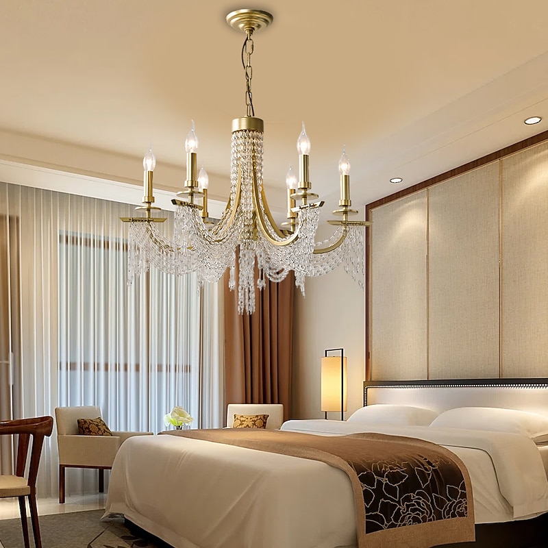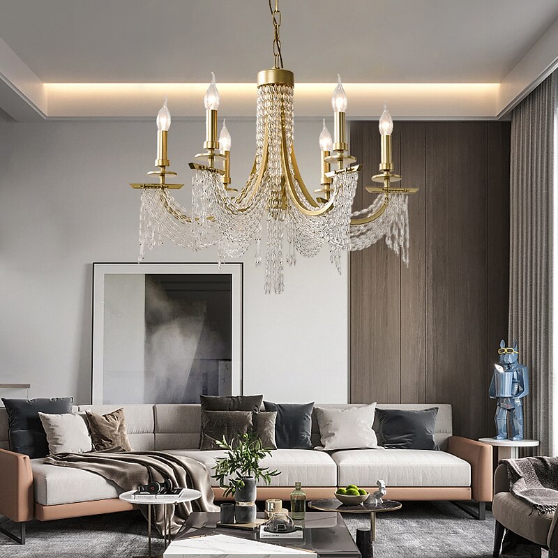 Modern Clear Crystal Chandelier Adjustable 6/8 Lights Crystal Glass Flush Mount Hanging Ceiling Pendant Light Classic Candle Style Lighting Fixture E12/E14 for Bedroom Living Room Hallway Entry 110-240V 9
