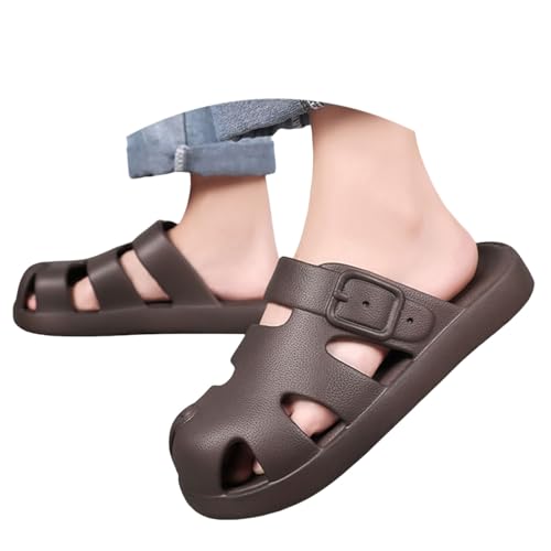 HOT ! BILIKEYU Mens Slip-on Slides Sandals Cutouts Closed Toe Breathable Comfortable Thick Sole Beach Sandal with Buckle Strap
