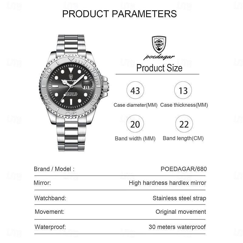 $21.99 - POEDAGAR Men Quartz Watch Outdoor Fashion Casual Wristwatch Luminous Calendar Waterproof Decoration Steel Watch 2025. Shop for cheap Quartz Watches online? Buy at lightinthebox.com on sale today!