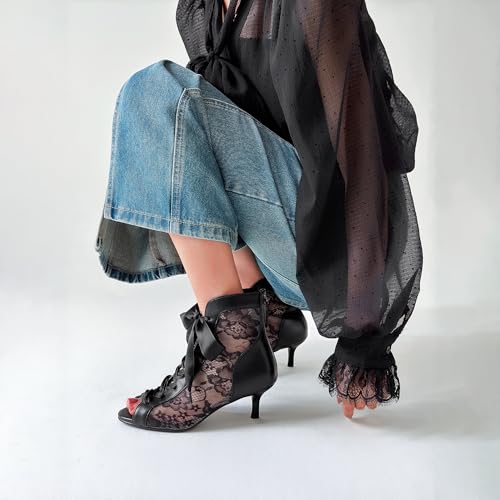 More information about Women's Mesh Lace Booties Lace Up Ankle Boots Wedding Shoes Open Toe Kitten Heels Dressy Birthday Party