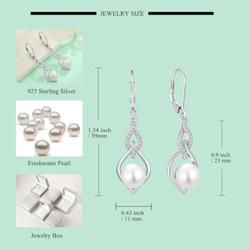 Starchenie Infinity Pearl Dangle Drop Earrings 925 Sterling Silver Rose Gold/18k Gold Plated Leverback Earrings Jewelry Gift for Women 6