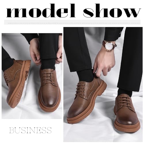 Men's Leather Lace Up Platform Oxfords Comfortable Round Toe Non-Slip Lug Sole Chunky Heel Casual Derbys Dress Shoes for Formal Business Office Leather Shoes 7